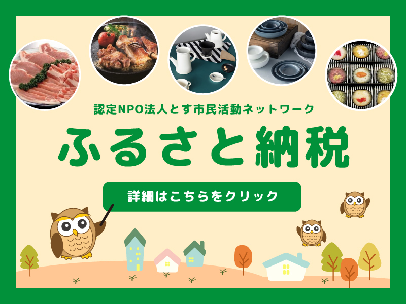認定NPO法人とす市民活動ネットワークは、「私たちの好きなまちは私たちでつくろう!」を合言葉により良い市民社会を目指して活動しています。